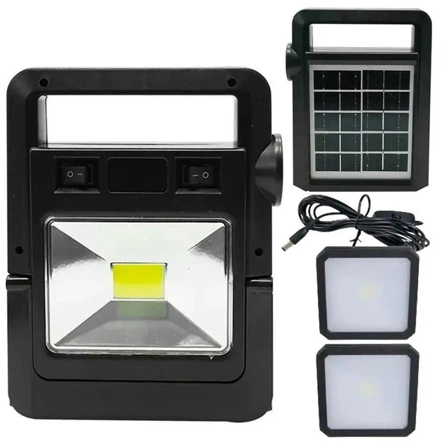 Ліхтар акумуляторний HB-7010 із сонячною панеллю та двома виносними лампами