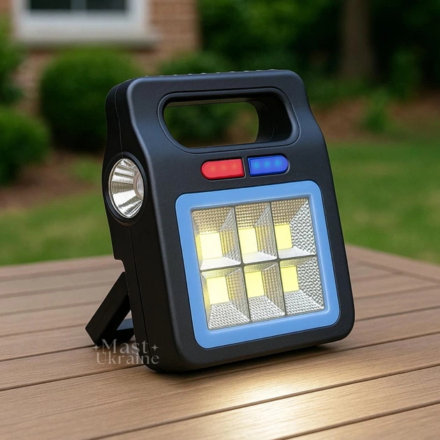 Ліхтар акумуляторний LED COB з сонячною панеллю і функцією Power Bank, потужний ручний ліхтар-прожектор з USB зарядкою і 4 р