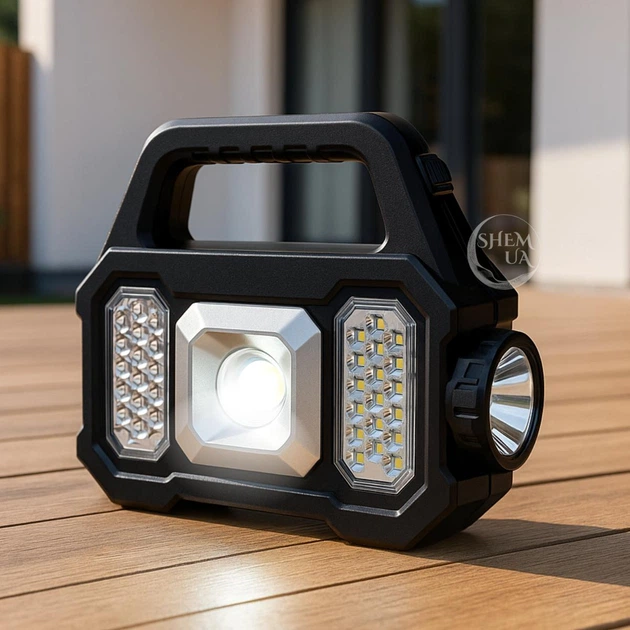Ліхтар акумуляторний LED COB з сонячною панеллю і функцією Power Bank, портативний ручний потужний ліхтар-прожектор з 3 режи