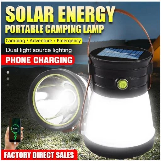 Акумуляторна LED лампа для кемпінгу з ліхтариком та сонячною панеллю