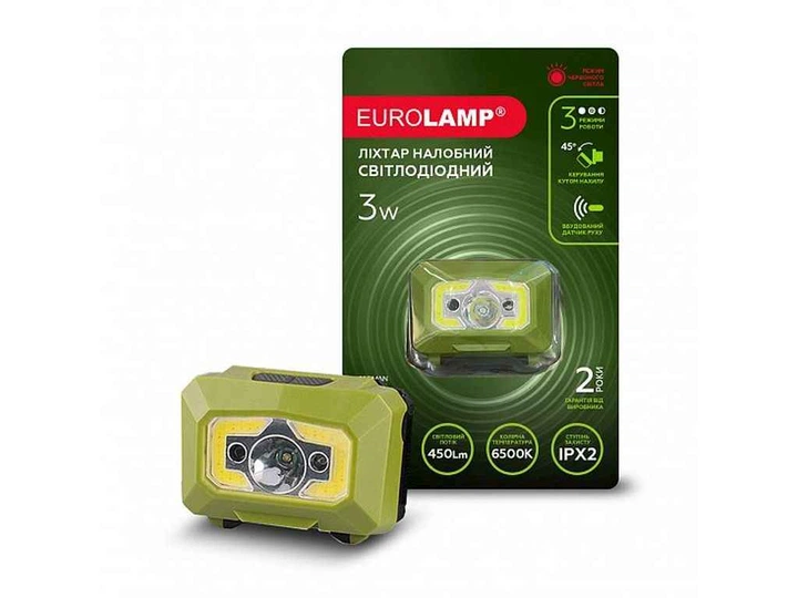 Ліхтар налобний EUROLAMP 6500K 3хААА 3W COB Red Light