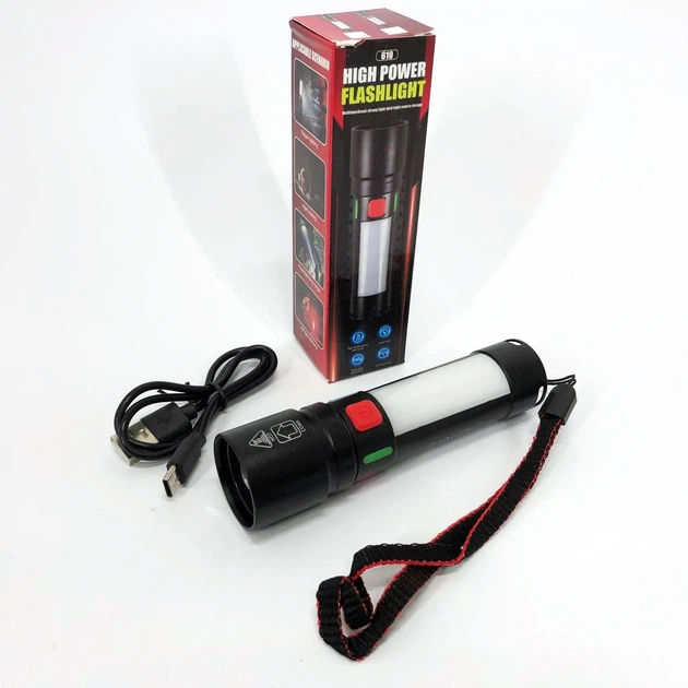 Ліхтар 611-TG+COB(white+red), Ліхтарики для екстрених ситуацій та аварій, Пошуковий ліхтар ручний