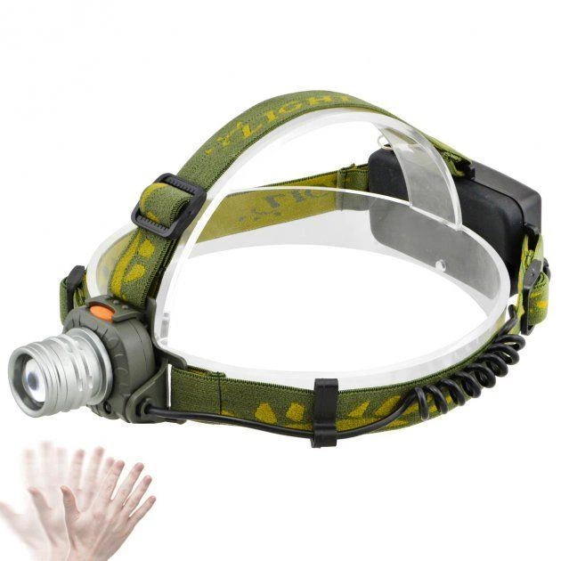 Акумуляторний налобний ліхтар Bailong 6166-LB з датчиком руху, 600 люмен, XPE Q5, 3 режими, водозахист Камуфляж