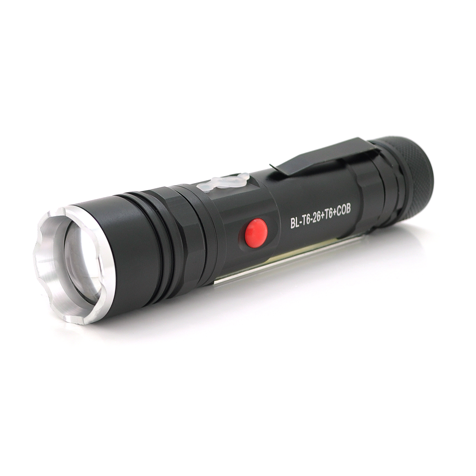 Ліхтарик Bailong BL-26+COB, Zoom, 3 режими, алюміній, компас, акум 18650, USB кабель, магніт, СЗУ, BOX