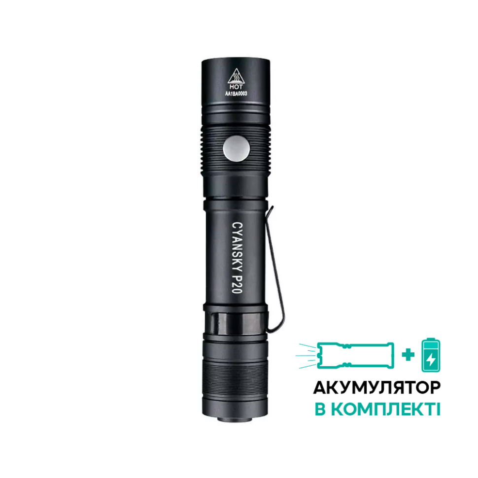 Ліхтар моделі Cyansky P20 є практичним вуличним приладом, який дає яскравість освітлення 1600 люменів з далекобійністю променя 240 метрів. Діод-фірми Luminus SST40. Робоча температура: - 30-50 ℃. Міцний зносостійкий корпус, захист від вологи і пилу, ефективно захищений від перегріву. Розміри корпусу: 133*24*25,6 міліметра. Важить модель 74 грами.