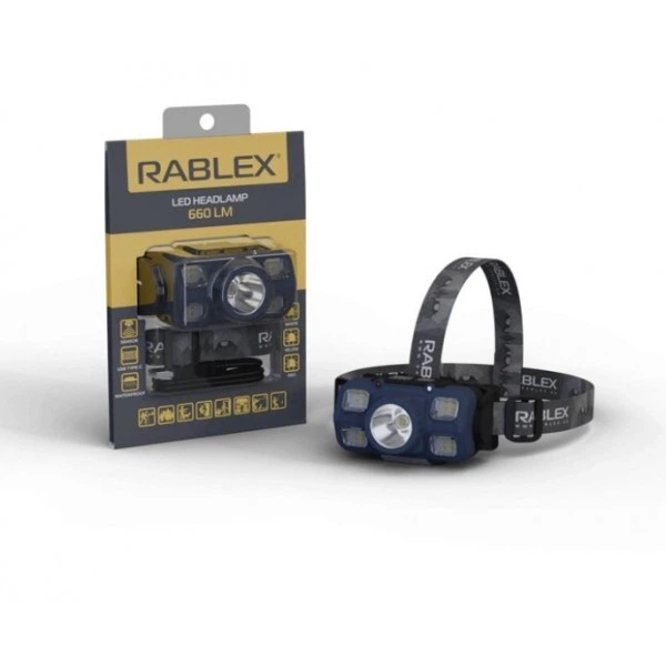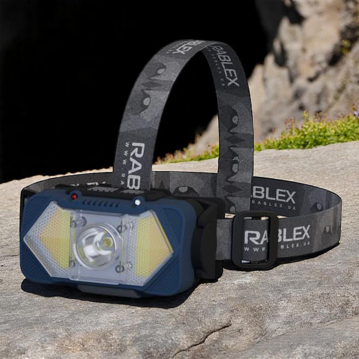 Ліхтар налобний з червоним, жовтим та білим світлом, з датчиком руху, 5 режимів, Type-C RABLEX RB964
