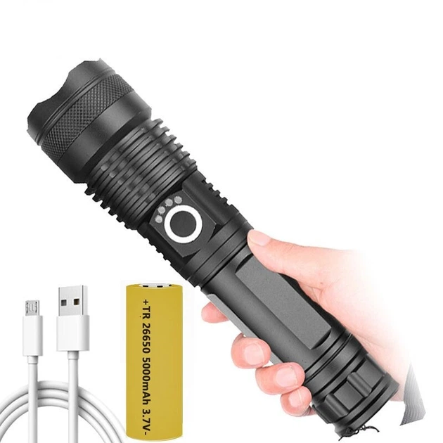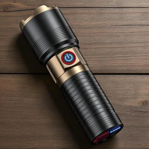 Ліхтар ручний TOPA F-905+COB, потужний світлодіодний ліхтарик з акумулятором, зарядка від USB, збоку
