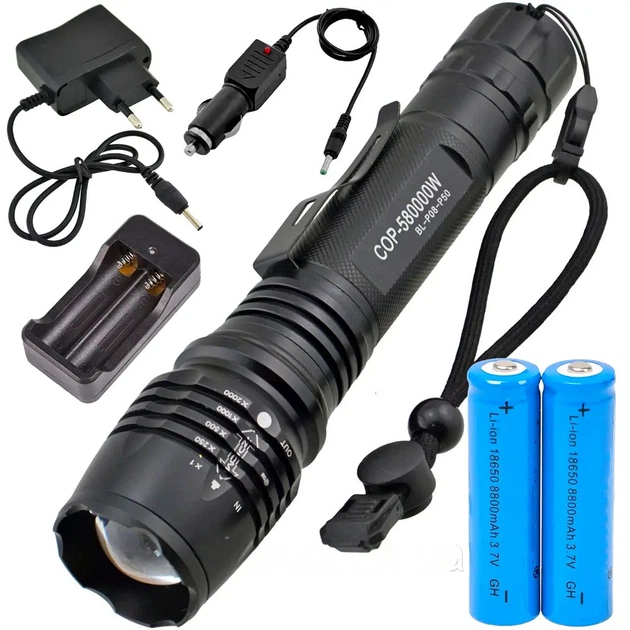 Ліхтар ручний акумуляторний BL-P08-P50, з ZOOM, 5 режимів + 3 види зарядки