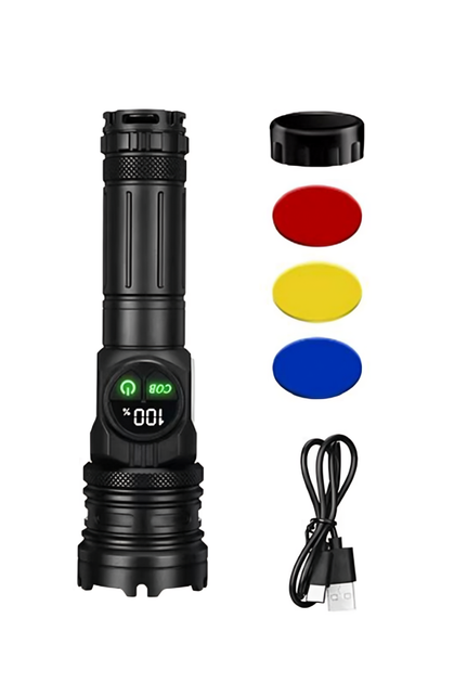 Ліхтар ручний акумуляторний водонепроникний з бічним світлом фільтрами магнітом LCD-дисплеєм функцією Power Bank (482058-Pro