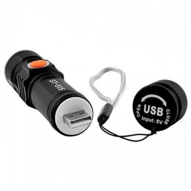 Ліхтарик ручний акумуляторний вбудований, діод T6, USB, довж. - 11 см, металевий корпус "X-Balong" BL515-T6