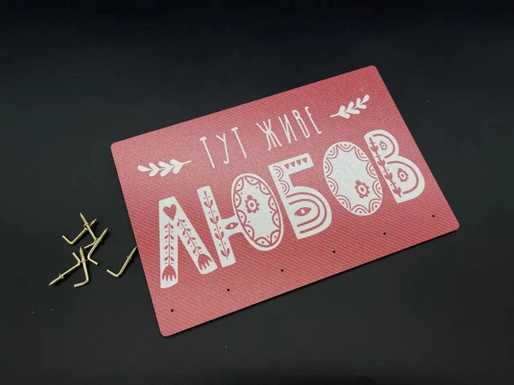 Ключниця настінна "Тут живе любов" дерев'яна з УФ-друком на 6 гачків 22 х 15 см (KL-027)