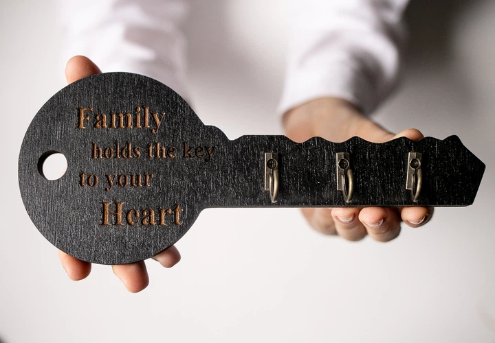 Дерев'яне панно Decart декор для кімнати, спальні, офісу. Дерев'яна картина в подарунок Ключниця з дерева Вуса 45х10 см Ключ