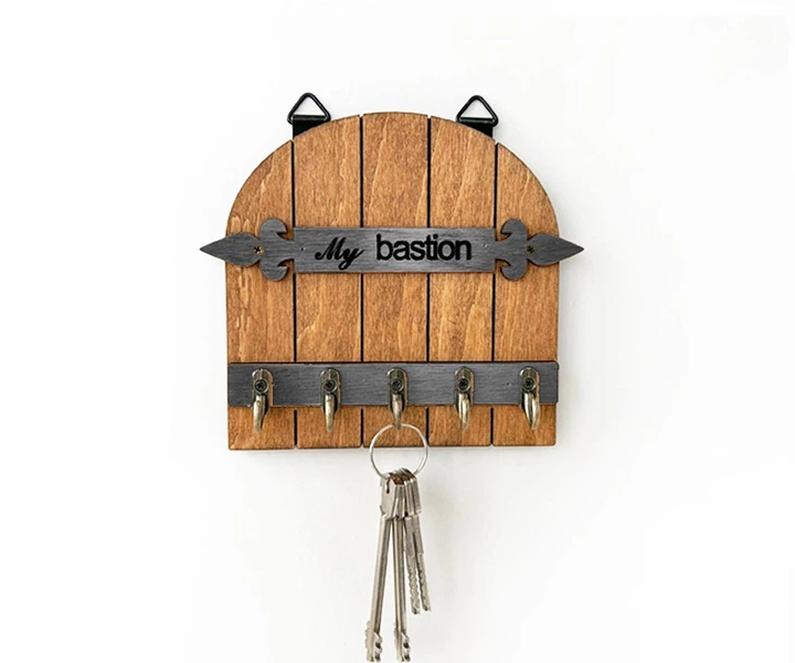 Ключниця з дерева на стіну на 5 гачків "MY BASTION" №1