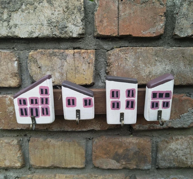 Ключниця настінна дерев'яна будиночки №2