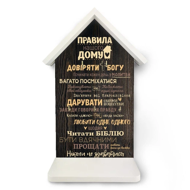Декоративна дерев'яна яна ключниця-хатка 22 33 см "Правила дому. Любити одне одного" коричнева русский
