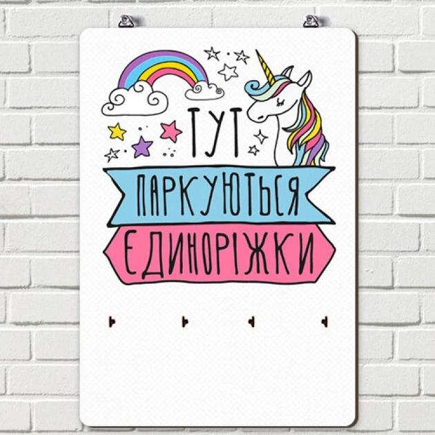 Ключниця настінна Єдиноріжка біла дерев'яна з принтом для дому та офісу (529039)