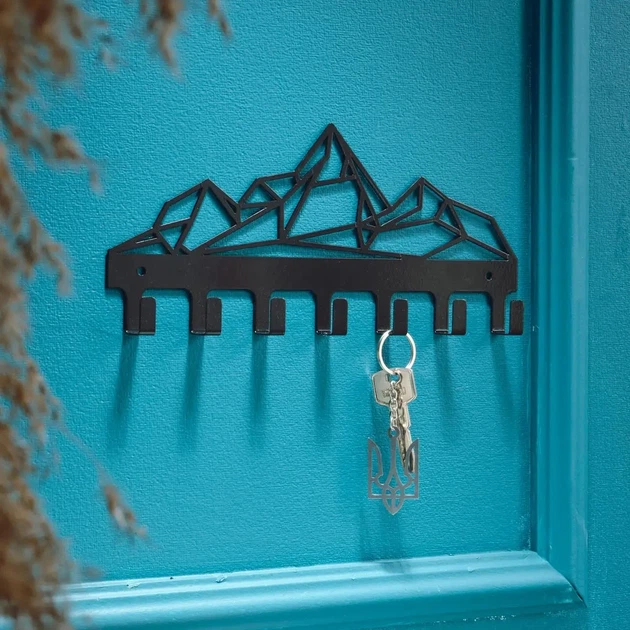 Ключниця настінна Гори металева на 7 гачків 27 х 12 см Чорний (KZ-47)