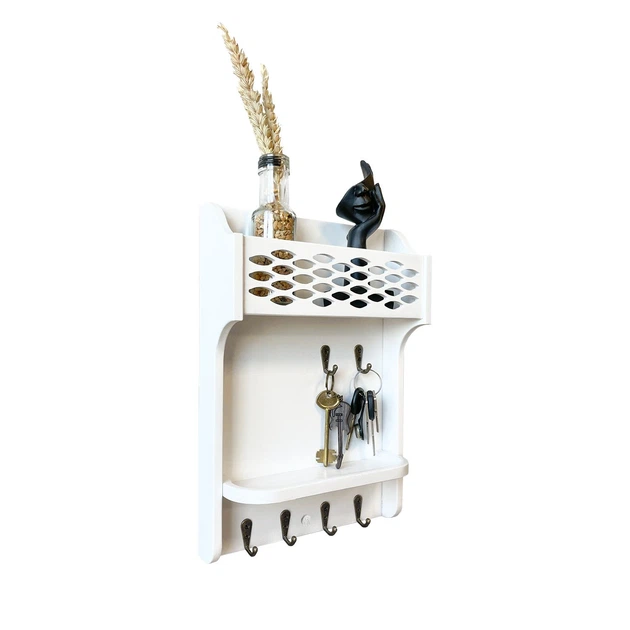 Ключниця настінна із дерева, вішалка для ключів біла 33х23х7,5 см