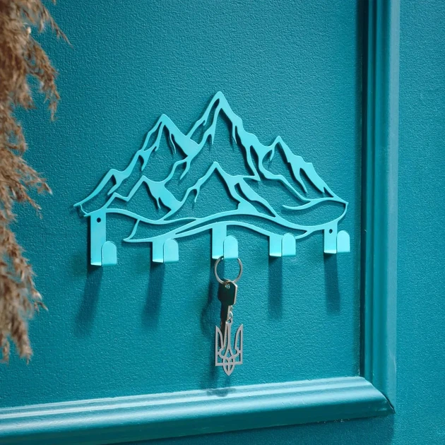 Ключниця настінна Гори металева на 5 гачків 29 х 14.5 см Бірюзовий (KZ-27)