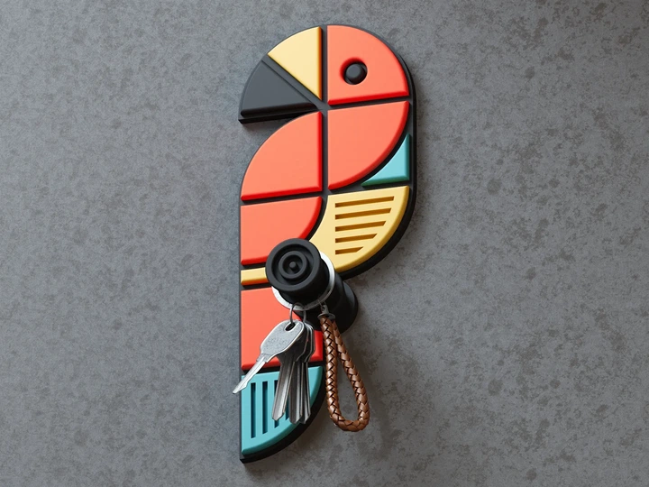 Настінний тримач для ключів у вигляді яскравого попугая. Aivory
