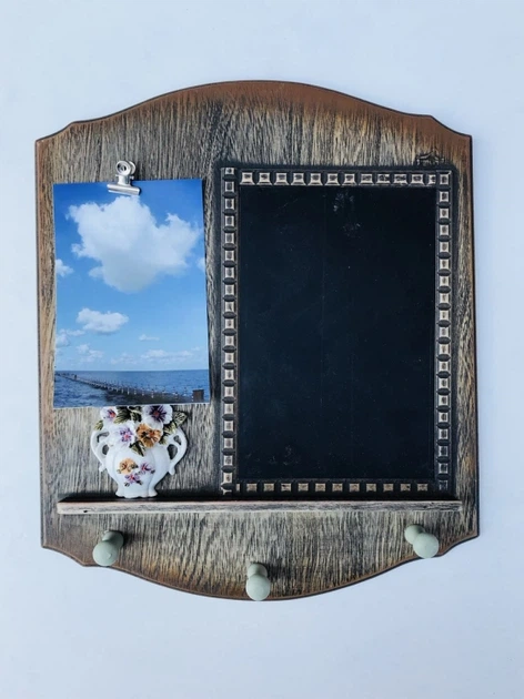 Ключниця настінна з грифельною дошкою та затискачем МДФ для ключів та нотаток 30х35х5,5 см (528784)