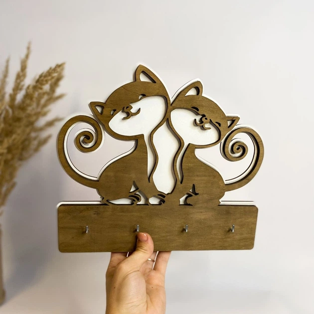 Навісний органайзер для ключів з натурального дерева HOME на 4 гачки з різьбленням 28х15 см, ключниця настінна