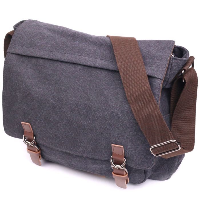 плечова сумка, месенджер, Матеріал корпусу - текстиль, великий, темно-сірий
