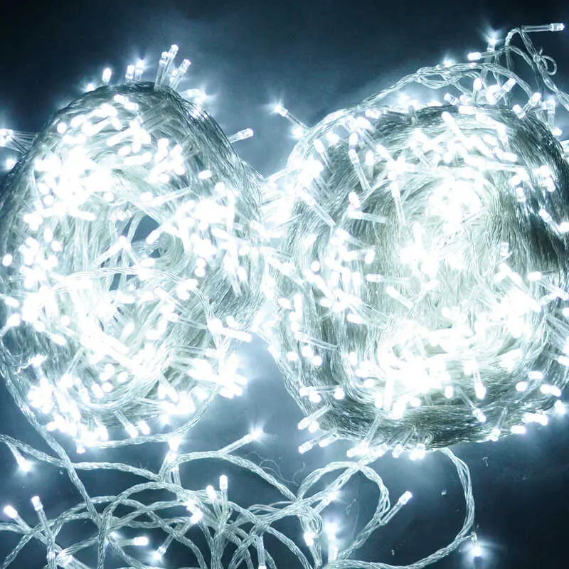 Світлодіодна гірлянда мішура Роса 50 метрів різнокольорове світло білий провід 1500 LED 8 режимів з пультом