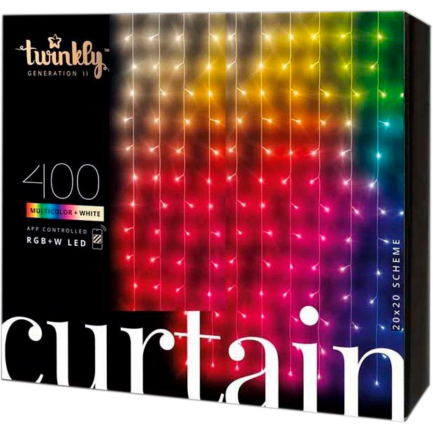 Гірлянда Smart LED Twinkly Curtain RGBW 400, Gen II, IP44, 1.45 х 2.1м, кабель прозорий (TWW400SPP-TEU) Акція!