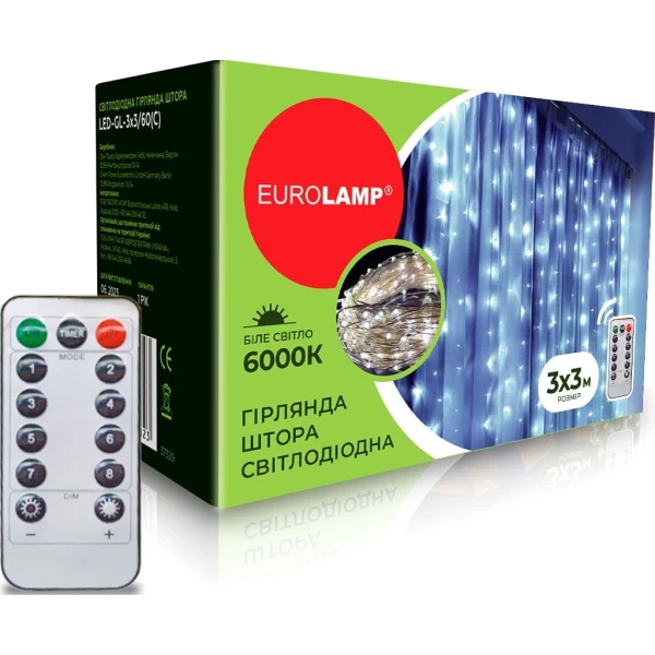 Гірлянда штора EUROLAMP 3х3м USB 6000К холодна (LED-GL-3x3/60(C)) Акція!