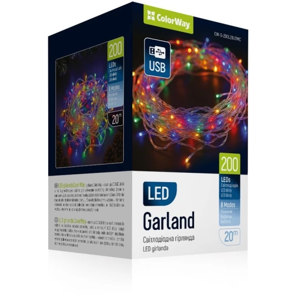 Світлодіодна гірлянда ColorWay LED 200 20 м різнокольорова USB CW-G-200L20UTMC