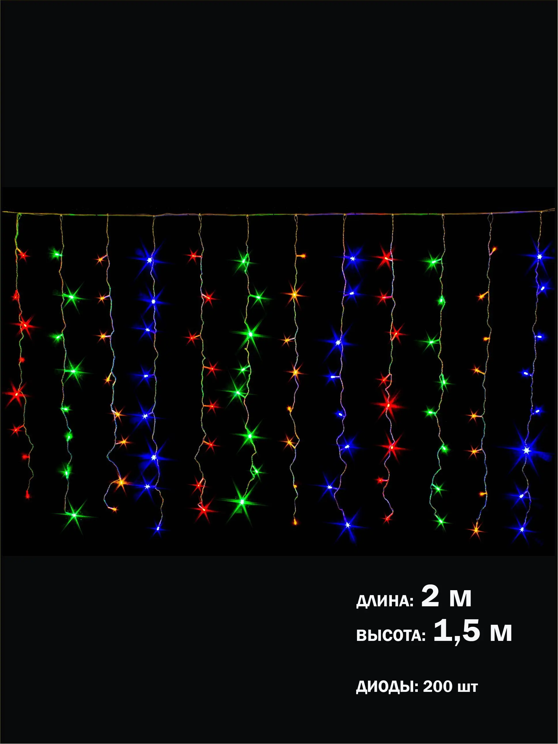 Гірлянда Завіса на вікно Різнокольорова 2*1,5 м світлодіодна 200 лампочок Laplandia від мережі (m.03.5Т.200+)