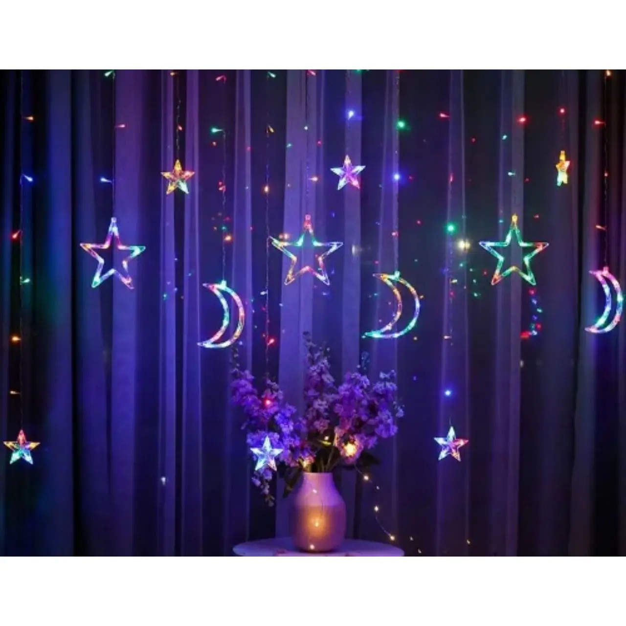 Гірлянда-штора Зірочки та місяць 2.5 × 1 м 138 LED мультиколір USB батарейки