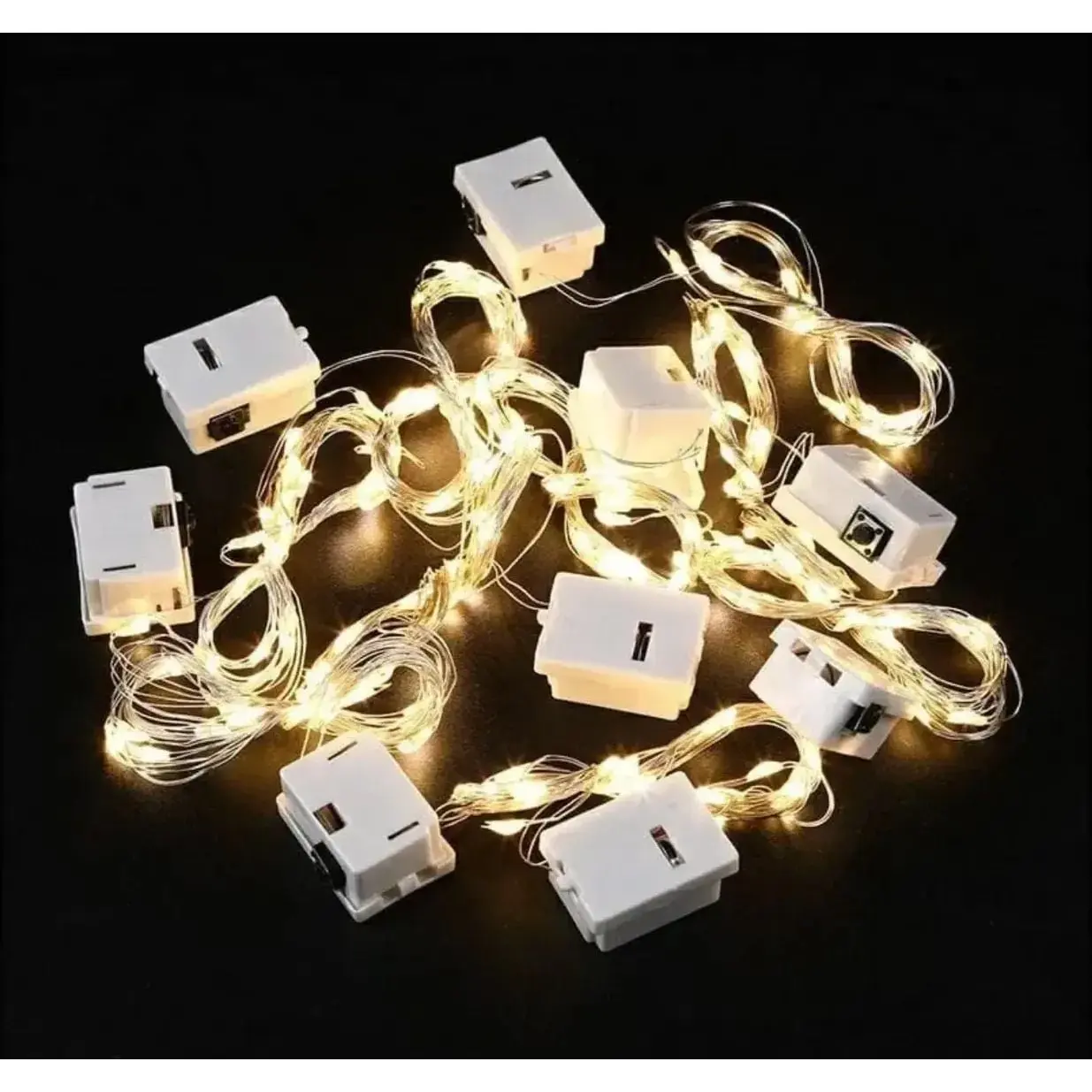 Світлодіодна гірлянда на срібному дроті 2M 20 LED тепле світло, три режими, набір 10шт, батарейки в