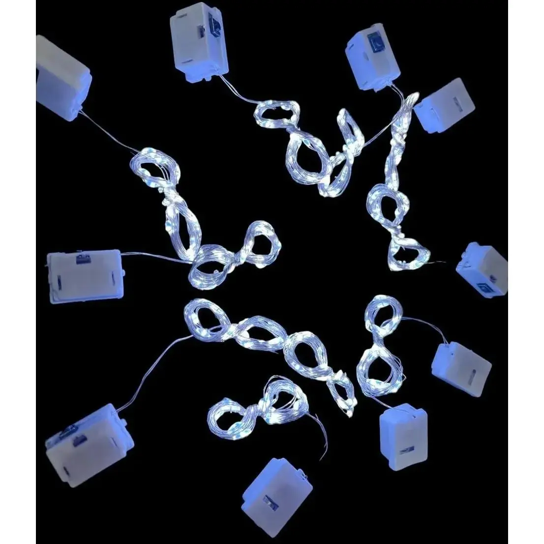 Світлодіодна гірлянда на срібному дроті 2M 20 LED біле світло, три режими, набір 10шт, батарейки в