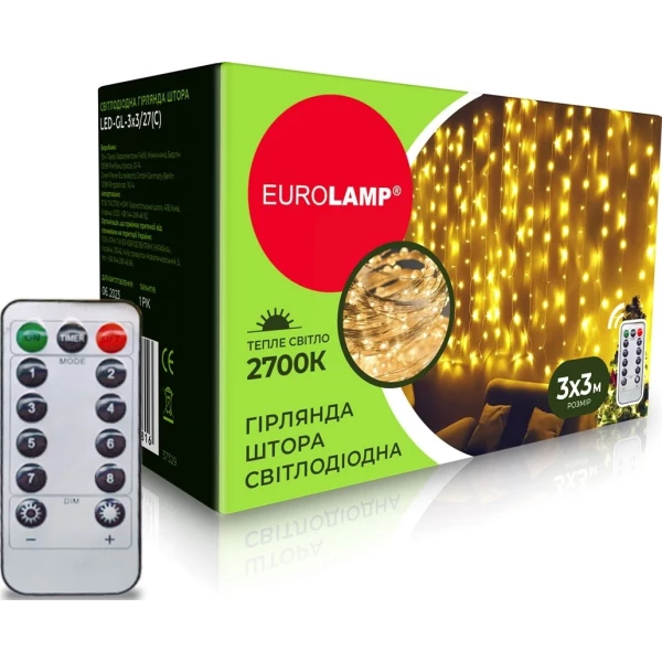 Гірлянда штора EUROLAMP 3х3м USB 2700К тепла (LED-GL-3x3/27(C)) Акція!