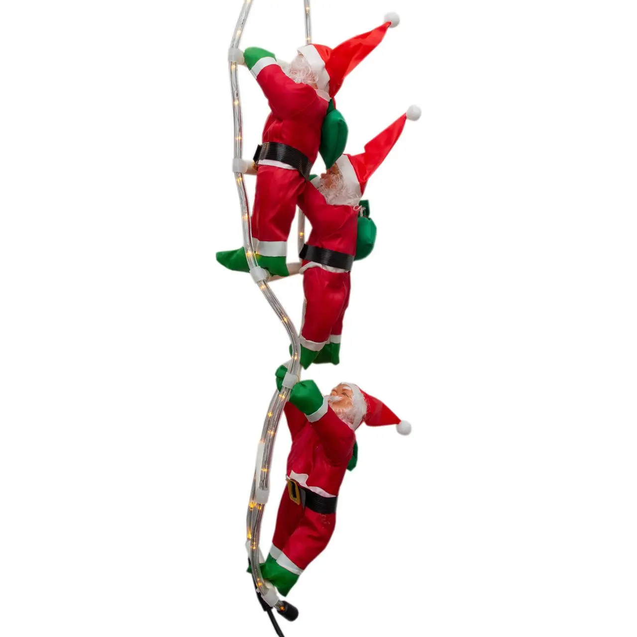 Новорічна світлодіодна декорація Devilon 3 Діда Мороза на драбині 30 см червоний (810184)