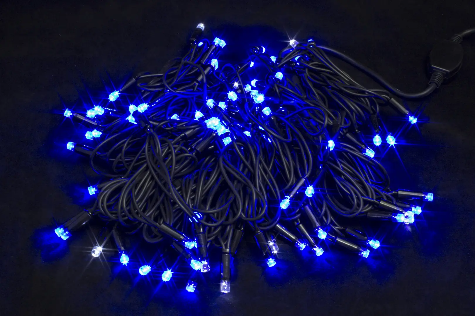 Вулична гірлянда нитка з мерехтінням 10 метрів Синя 100 LED від мережі світлодіодна Laplandia каучуковий провід (B.01.7B.100