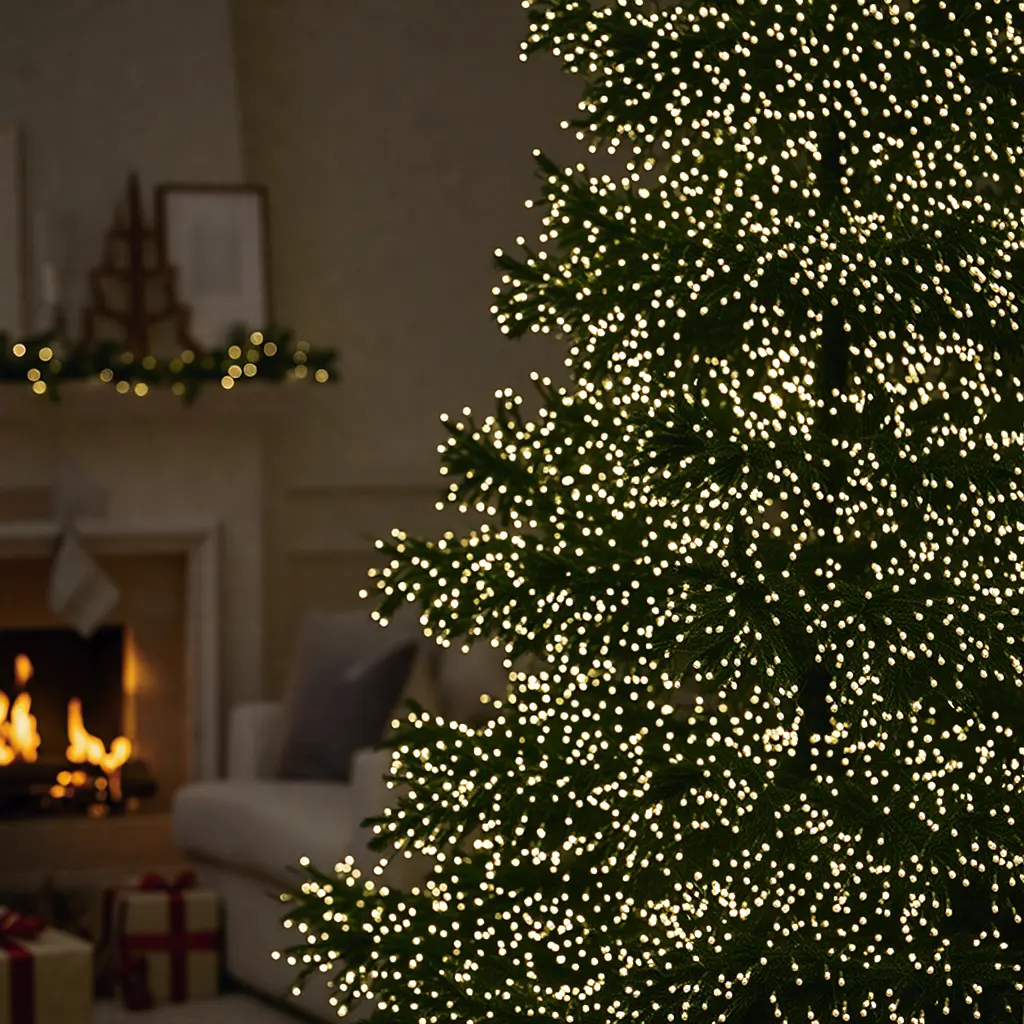 Новорічна гірлянда кімнатна роса Garlando D1500L50MWY 50 м 1500 LED Хвойна лапа білий дріт Жовте сяйво Garlando D1500L50MWY