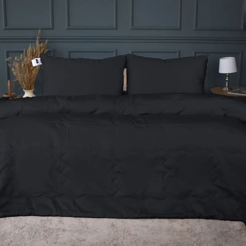 Літній постільний комплект MirSon Line Satin Light Pro Black Вовна Двоспальний (2200010980738)