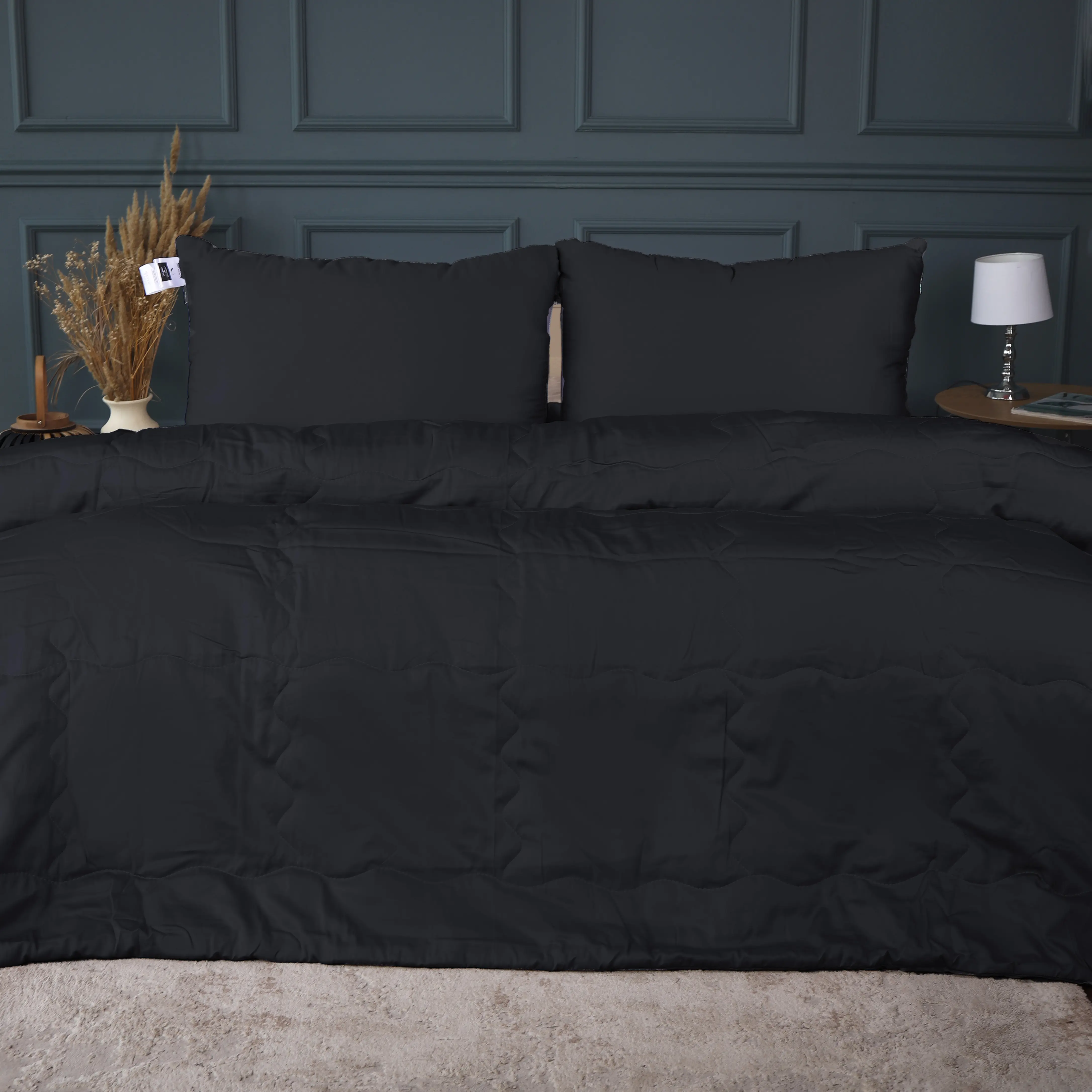 Літній постільний комплект MirSon Line Satin Light Pro Black Вовна Сімейний (2200010980769)