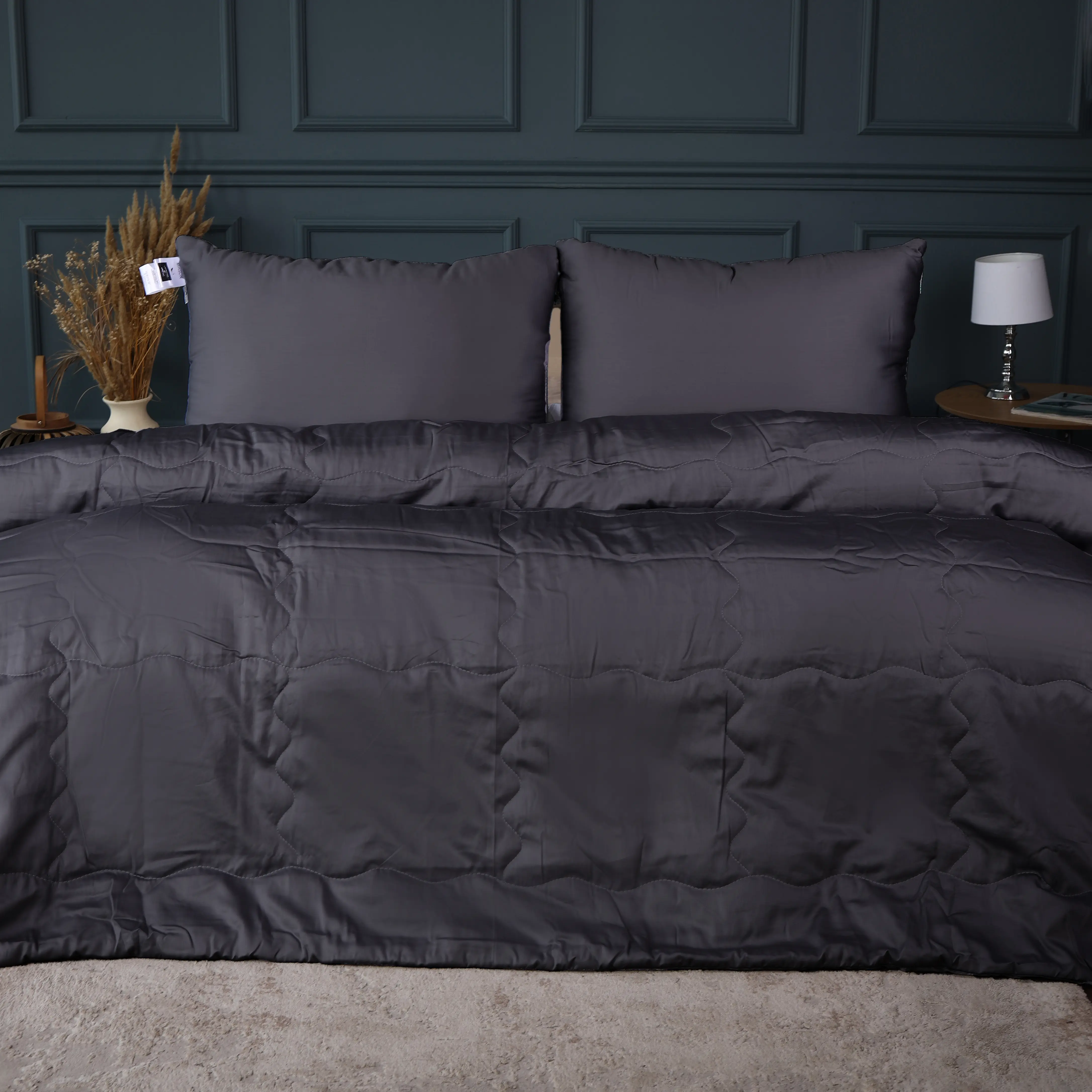 Літній постільний комплект MirSon Line Satin Premium Iron grey Bamboo Сімейний (2200010979657)