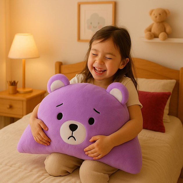 М’яка подушка-ведмедик фіолетова 6045 см – дитяча плюшева подушка іграшка, подарунок на Новий рік та Святого Миколая