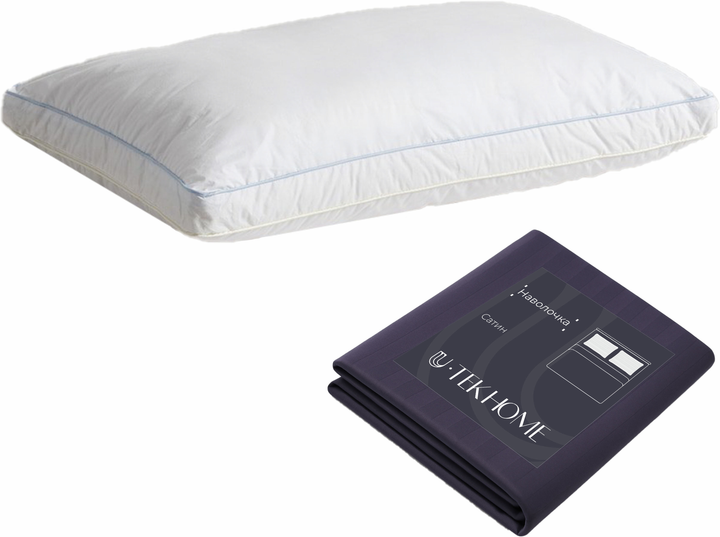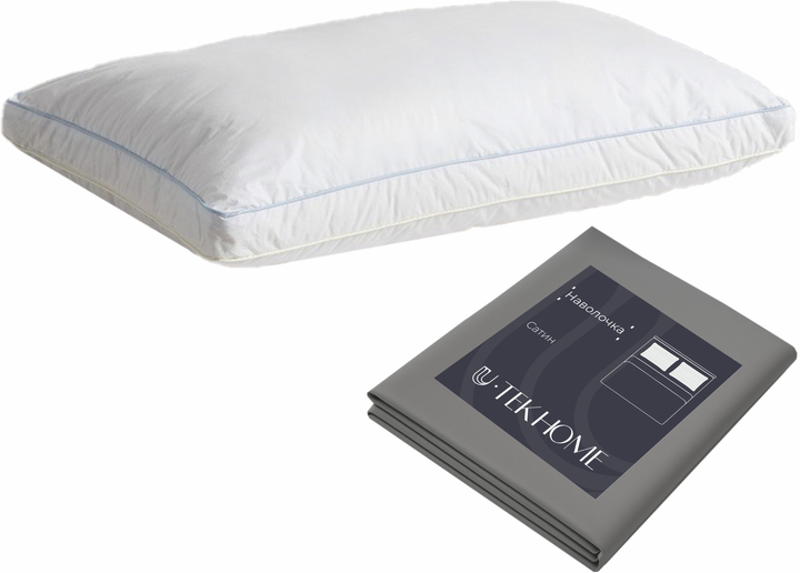 Набір U-tek Подушка Teak De Pierre Силіконізовані кульки 40x60 см + Наволочка Boston Iron Grey Сатин Темно-сіра 40х60 см (PT