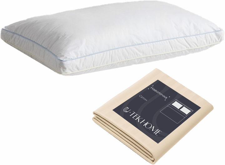 Набір U-tek Подушка Teak De Pierre Силіконізовані кульки 40x60 см + Наволочка Boston Ivory Beige Stripe Сатин Бежева в смужк