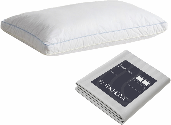 Набір U-tek Подушка Teak De Pierre Силіконізовані кульки 40x60 см + Наволочка Boston Soft Grey Stripe Сатин Сіра смужка 40х6