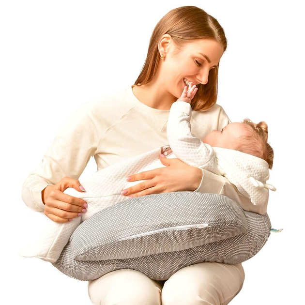 Подушка для годування диван 60х70х16 см бавовна антиалергенна з блискавкою сіра натуральна