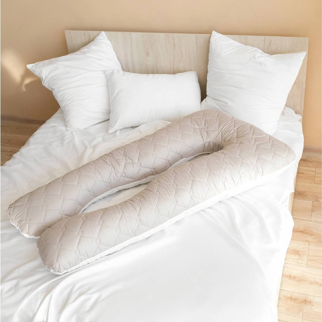 Подушка П-подібна для сну 140х75х20 см сіра+біла стібана з внутр.подушкою на блискавці