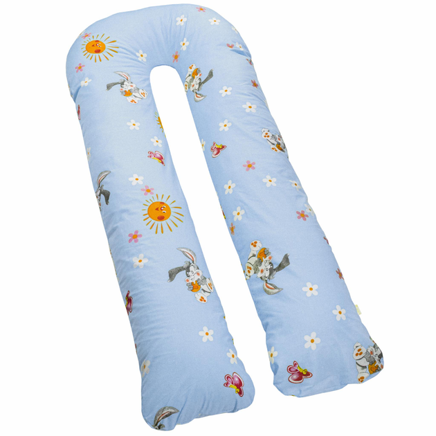 Подушка для вагітних і годування БіоПодушка U-maxi 140х72 см Зайченята на блакитному