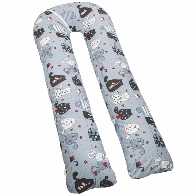 Подушка для вагітних і годування БіоПодушка U-maxi 140х72 см Котики на сірому
